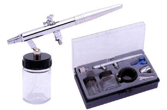 Adjustable needle locknut holds spray pattern from hair line to broad shading.